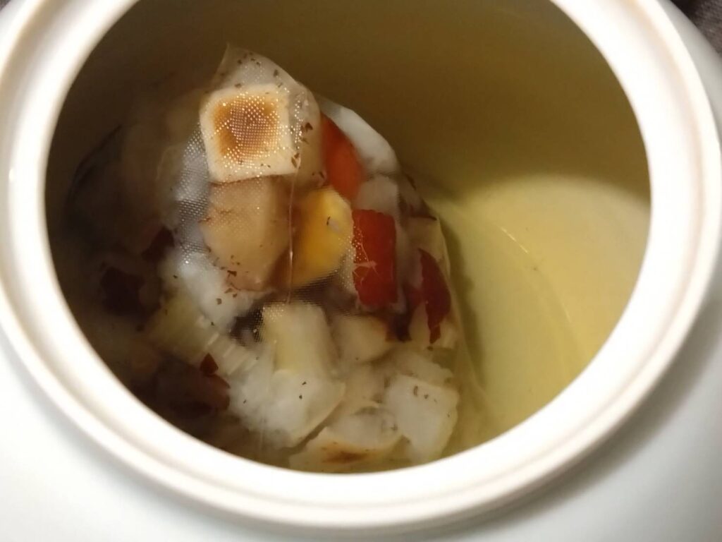 ティーバックから中身を出しても淹れてみました。水を含むとティーバッグがパンパンになっているので、バラしたほうがもっと成分がでやすくなるのではと考えました。この方法だと、梨などの材料をそのまま食べることもできてよかったです。美味でした。